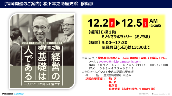 【松下幸之助歴史館移動展】 が福岡事業場(美野島)で開催されます。