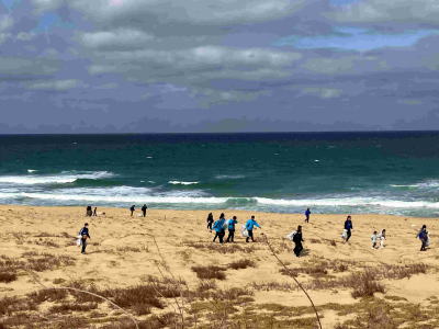 ![]() 北風の強い海辺でゴミ拾い |